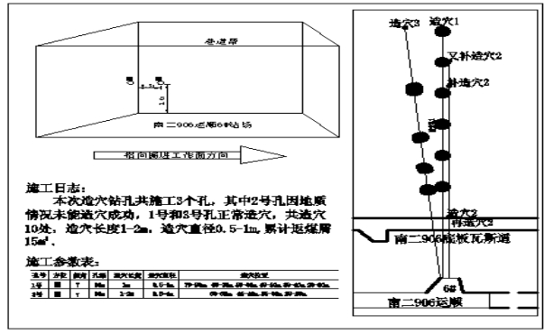 造穴鉆孔于3月31日四點班開始施工至4月1日四點班結(jié)束,施工期間大隆礦技術(shù)人員到現(xiàn)場指導(dǎo),共成功施工造穴鉆孔2個。