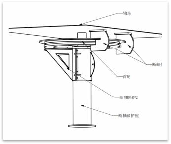 3、增設(shè)了斷軸保護(hù)裝置,該裝置采用全機(jī)械結(jié)構(gòu),能夠有效防止驅(qū)動軸斷裂后驅(qū)動輪及鋼絲繩沿斜巷下滑造成事故擴(kuò)大,也能防止鋼絲繩松繩在驅(qū)動輪處發(fā)生脫繩事故。