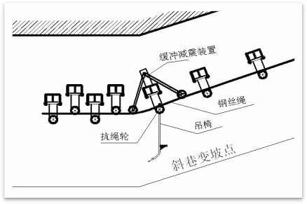 4、變坡點處增設(shè)了緩沖減震裝置。乘坐人員經(jīng)過變坡點時時無明顯震動感覺,通過順暢,鋼絲繩抖動現(xiàn)象消失,提高了乘坐舒適性和安全性。.