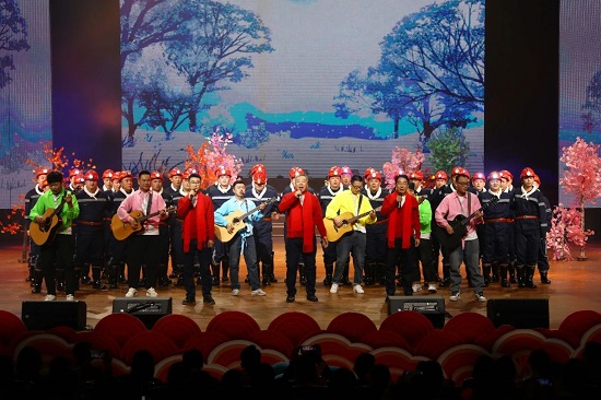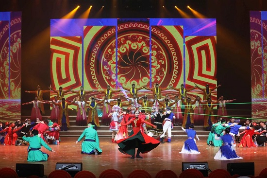 小品《我要上春晚》融入口技、器樂表演以及東北二人轉(zhuǎn)、京劇等戲曲元素,從側(cè)面展示礦區(qū)職工群眾多姿多彩的精神文化生活,以詼諧幽默的方式讓觀眾捧腹,在笑聲中傳遞正能量。來自內(nèi)蒙古呼和浩特市歌劇舞劇院的藝術(shù)家們不遠(yuǎn)千里而來,為晚會(huì)帶來充滿民族特色和地域風(fēng)情的歌舞《牧歌歸鴻》《踏歌起舞》,一曲曲高亢嘹亮、飽含深情的歌聲,伴隨著悠揚(yáng)的琴聲和豪放的舞姿久久回蕩,表達(dá)著草原牧民與企業(yè)干部職工結(jié)下的綿長(zhǎng)、厚重情誼,也深深傳遞著鐵能域外將士對(duì)家鄉(xiāng)故土的眷戀之情。