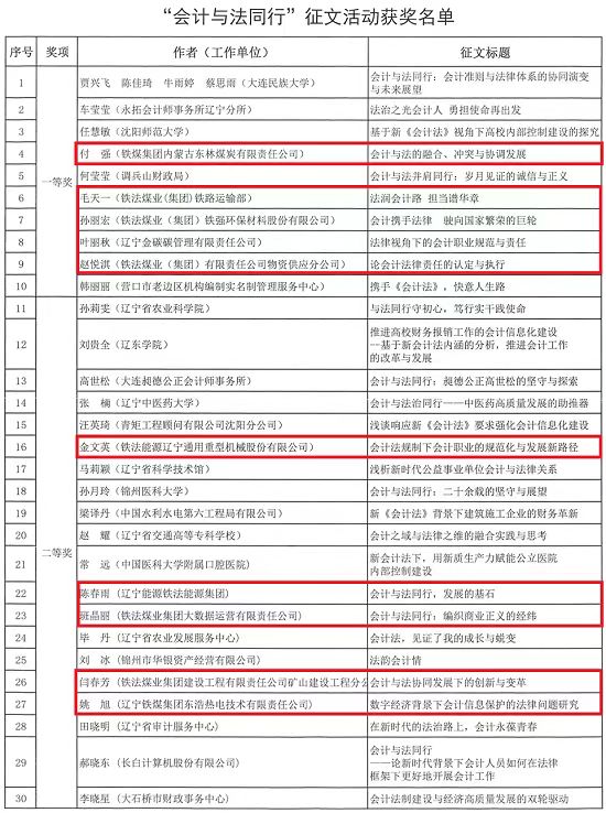 近日,省“會計與法同行”征文活動評選結果公布,公司5名職工論文榮獲一等獎,20名職工論文分獲二、三等獎。