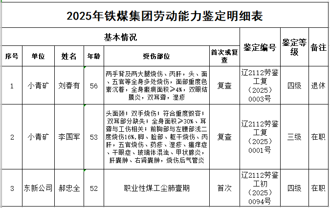 2025年3月鐵煤集團(tuán)勞動(dòng)能力鑒定結(jié)論公示