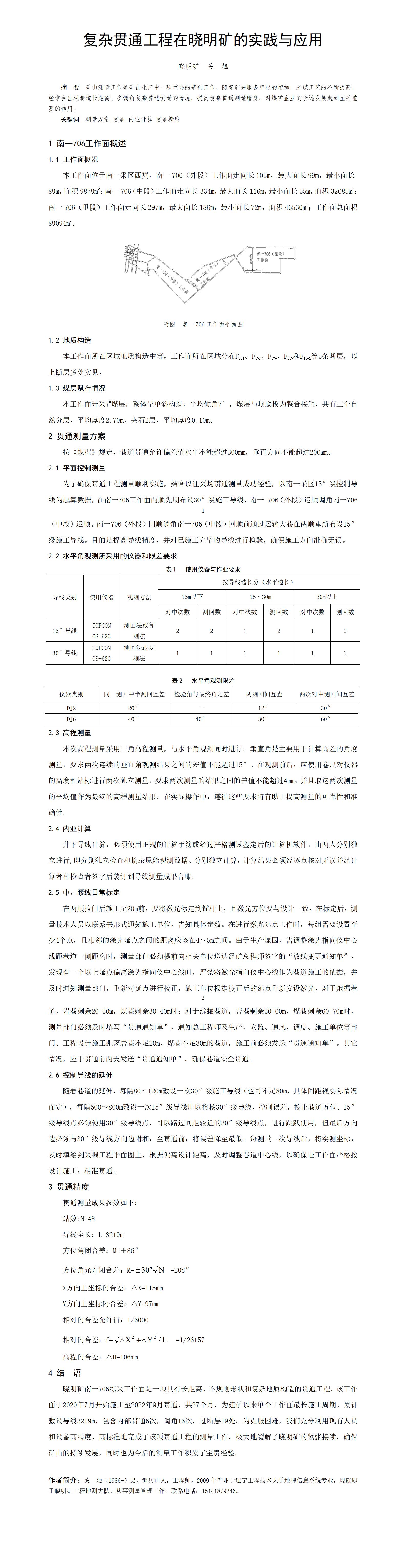 第61屆等級(jí)獎(jiǎng)?wù)撐?--復(fù)雜貫通工程在曉明礦的實(shí)踐與應(yīng)用