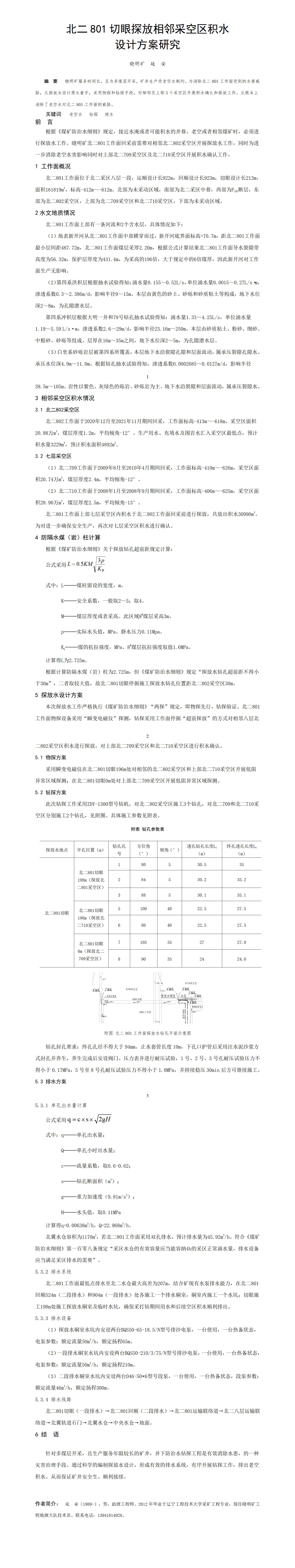第61屆等級獎?wù)撐?--北二801切眼探放相鄰采空區(qū)積水設(shè)計方案研究