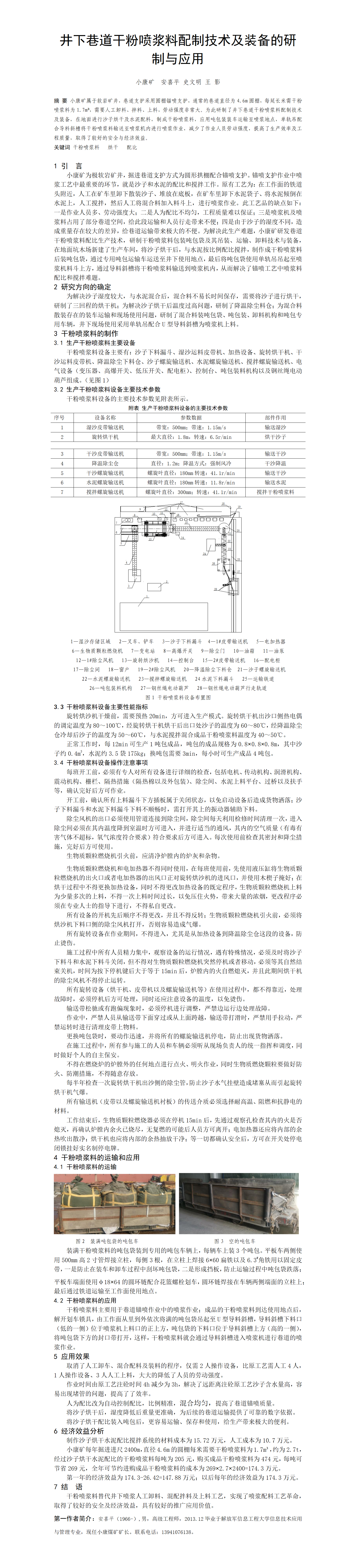 第61屆等級(jí)獎(jiǎng)?wù)撐?--井下巷道干粉噴漿料配制技術(shù)及裝備的研制與應(yīng)用