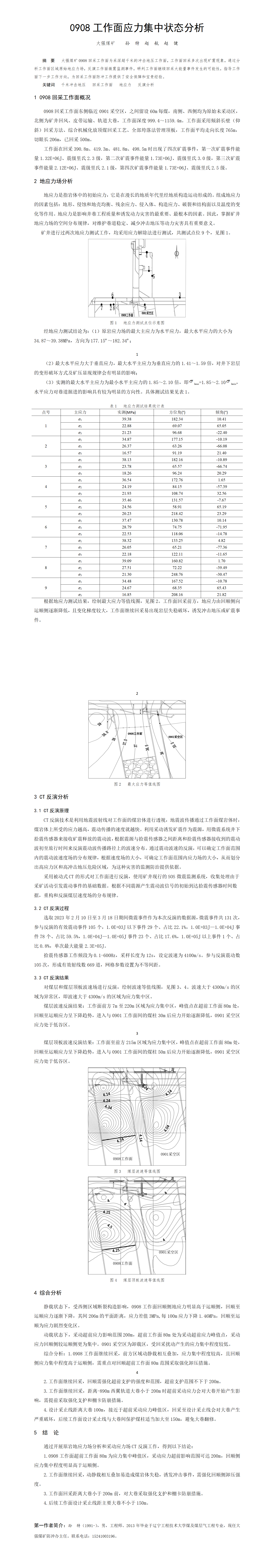 第61屆等級獎?wù)撐?--0908工作面應(yīng)力集中狀態(tài)分析