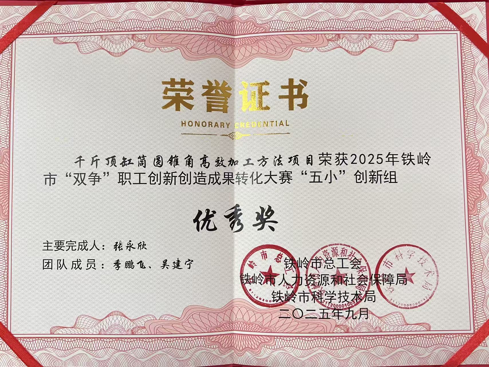 近日,遼寧通用重型機(jī)械股份有限公司機(jī)加工車間職工張永欣、李鵬飛、吳建寧團(tuán)隊(duì)自主研發(fā)的“自動(dòng)復(fù)位調(diào)心夾具與獨(dú)立進(jìn)給車刀系統(tǒng)”榮獲“2025年鐵嶺市‘雙爭(zhēng)’職工創(chuàng)新創(chuàng)造成果轉(zhuǎn)化大賽”優(yōu)秀獎(jiǎng)。