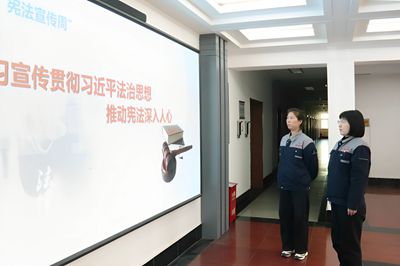 該部在線上利用微信群轉(zhuǎn)發(fā)習(xí)近平法治思想、黨的二十屆四中全會(huì)精神、中央全面依法治國(guó)工作會(huì)議精神等內(nèi)容組織職工學(xué)習(xí)。線下利用電子屏、板報(bào)等形式進(jìn)行廣泛宣傳,政工干部深入基層班前會(huì)對(duì)法律知識(shí)進(jìn)行講解,將憲法精神融入職工心中,營(yíng)造出尊法、學(xué)法、守法、用法的良好法治氛圍。