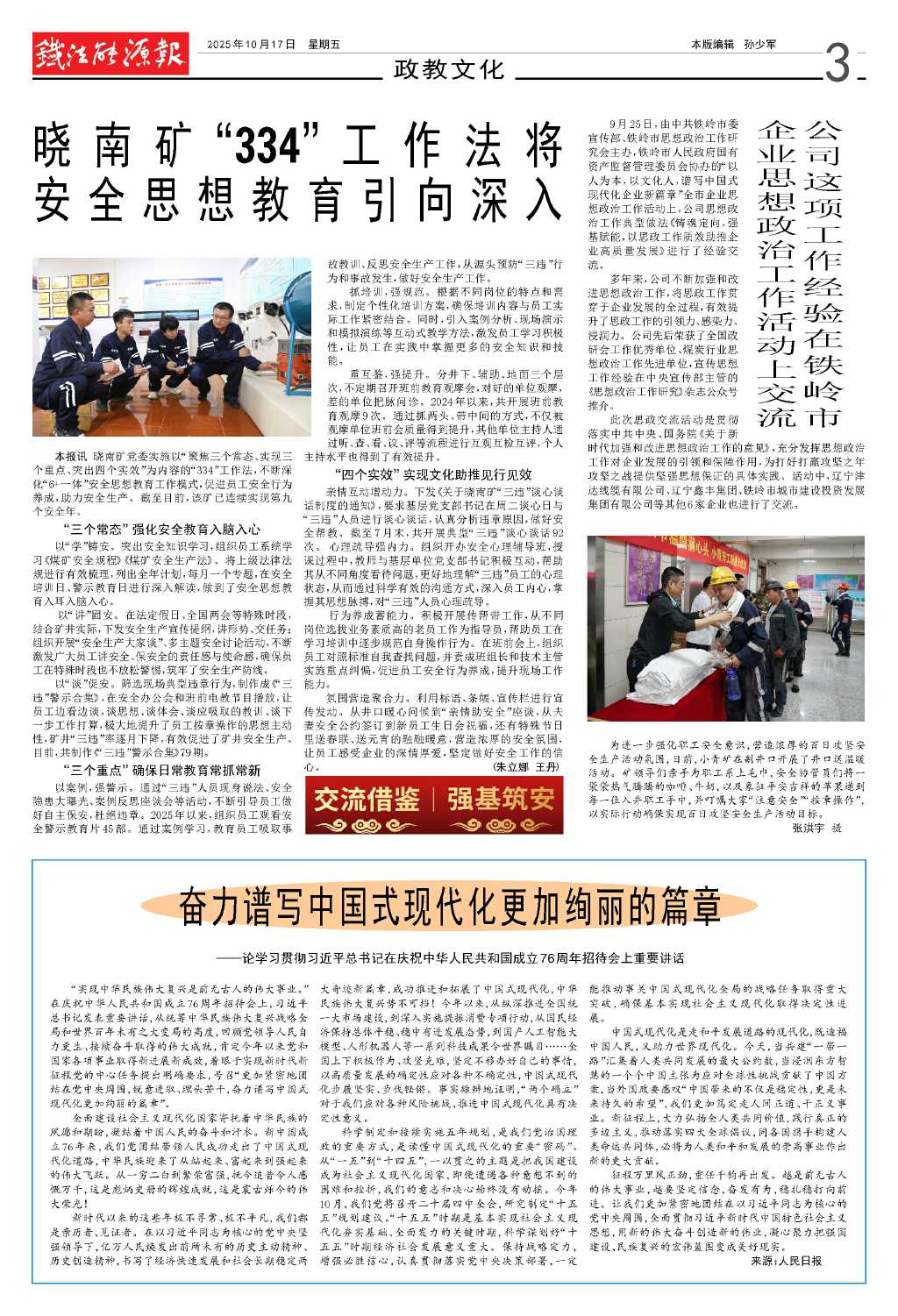 曉南礦“334”工作法將安全思想教育…