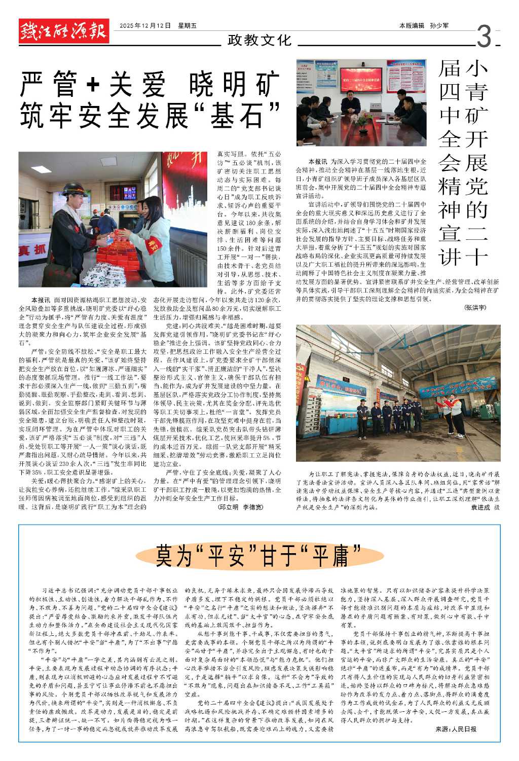 嚴(yán)管+關(guān)愛 曉明礦筑牢安全發(fā)展“基石…